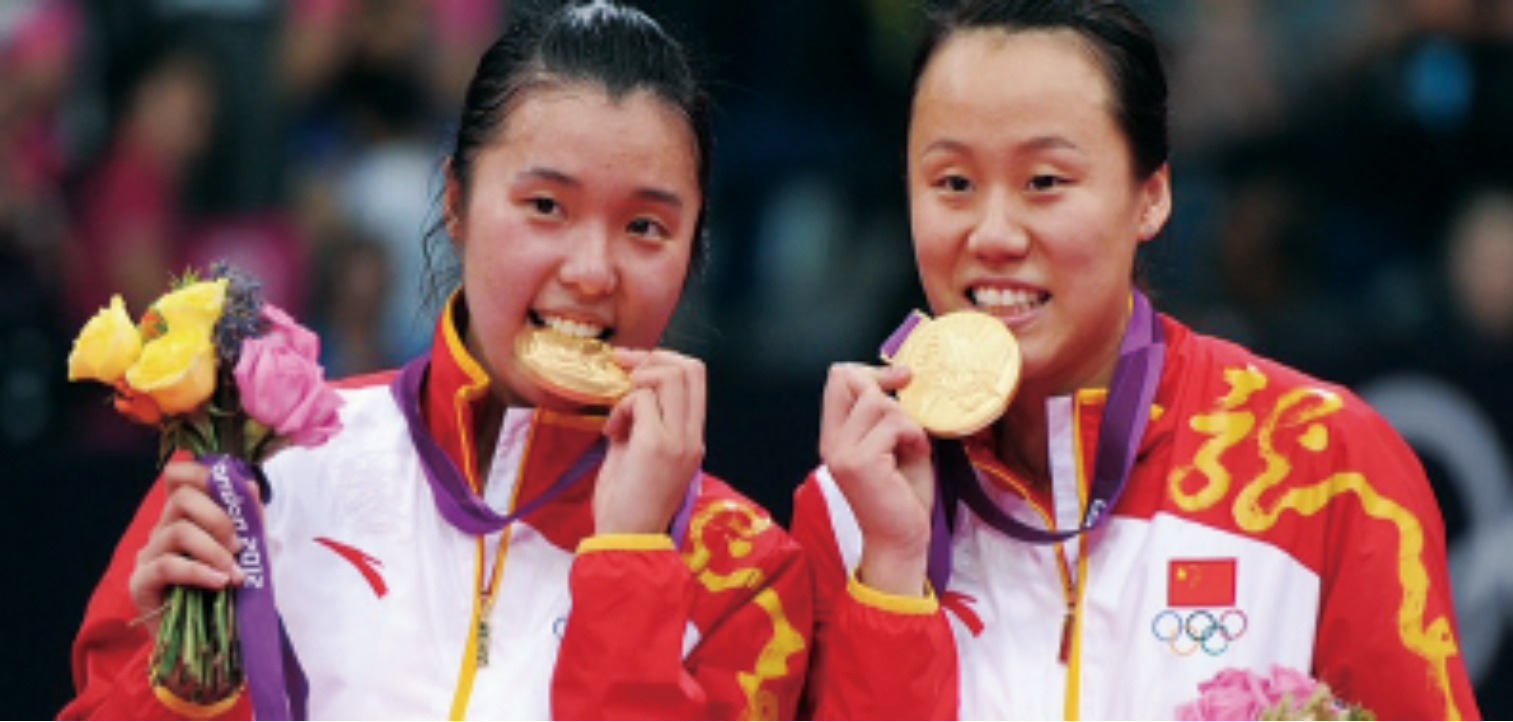 我校学生田卿(左)与队友赵云蕾搭档获得伦敦奥运会羽毛球女子双打冠军。