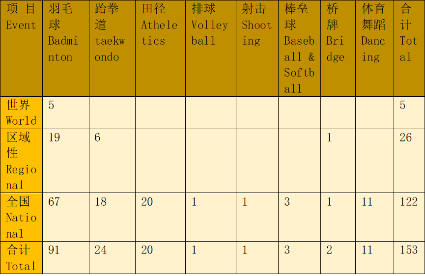 我校学生体育运动队在国家级以上比赛获得冠军统计(2000年~2025年)