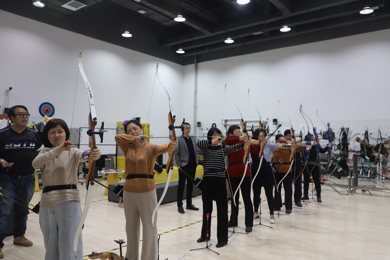 理论学习结束后,全体人员移步至综合体育馆射箭馆,体验射箭这项古老又现代的体育项目。参与者在拉弓瞄准中感悟射箭的魅力,在专业教师讲解下,感受体育在健体、强心和增智方面的育人价值,体会润物细无声的体育课程思政育人效果。