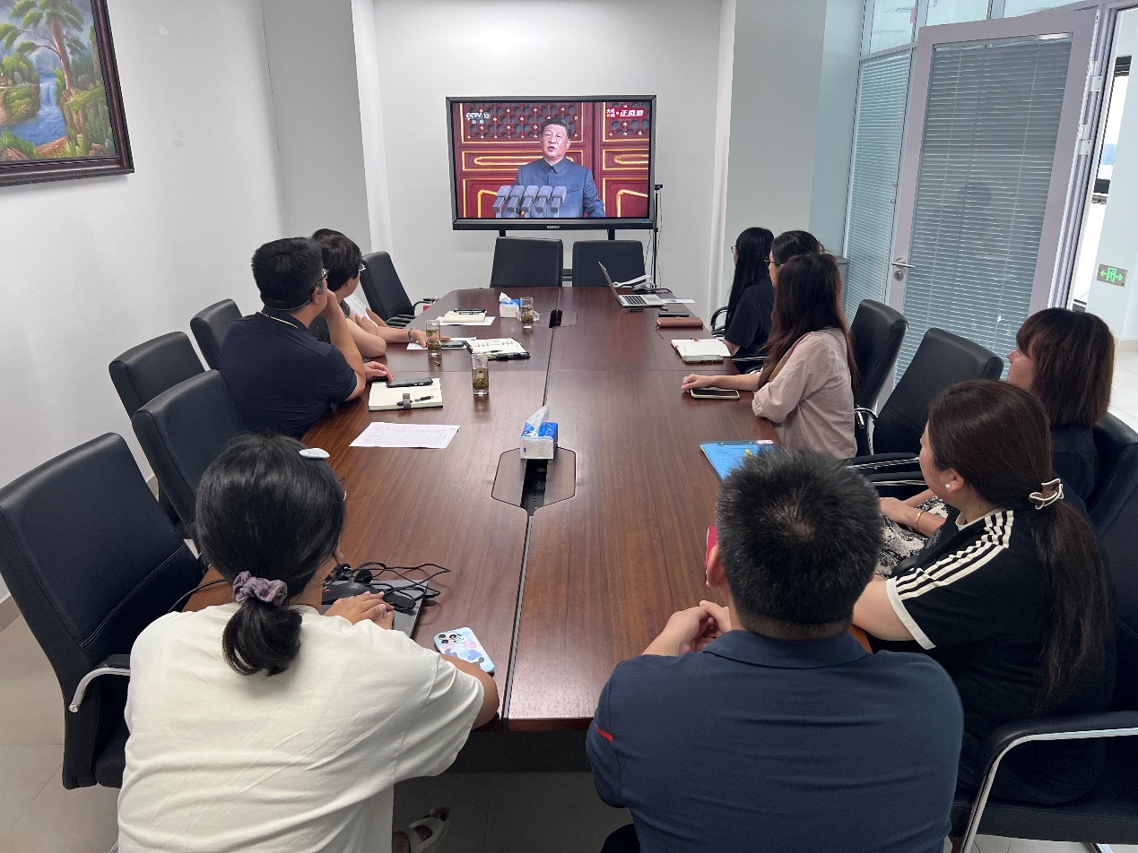 9月3日上午,体育部领导班子成员和行政管理岗在岗职工在综合体育馆北馆三层西侧小会议室,集体观看纪念中国人民抗日战争暨世界反法西斯战争胜利80周年大会。