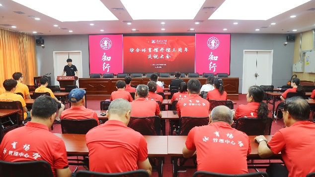 体育部始终高度重视场馆管理队伍建设,注重队伍的高效能管理。自2022年8月18日综合体育馆开馆以来,每年8月18日召开开馆周年庆祝大会已成为体育部场馆工作惯例,是场馆管理队伍齐聚一堂、凝神聚力的重要契机。此次大会的召开进一步统一了队伍思想,明确了新的历史发展背景下体育场馆工作的思路与目标。在未来工作中,体育部将继续把场馆队伍建设作为重点工作之一,持续发挥好体育场馆载体服务功能,积极投身大局,不负时代召唤。