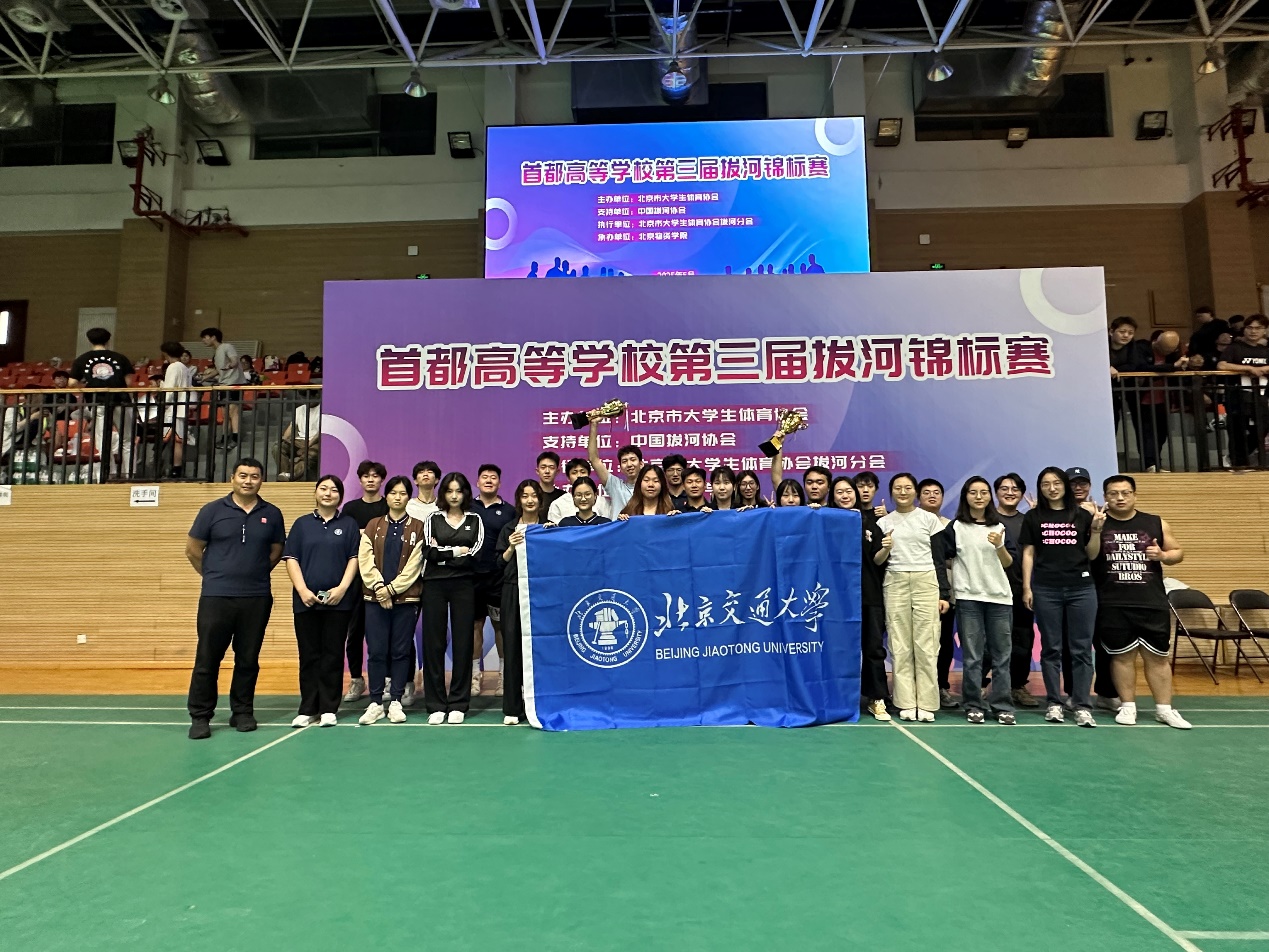 2025年5月24日,由北京市大学生体育协会主办的首都高等学校第三届拔河锦标赛北京物资学院文体馆成功举办。本次比赛共有来自有清华大学、中国农业大学等16所高校的380余名运动员参加。交大拔河队在教练员公健的带领下参赛,并取得了1金1铜等多项优异成绩。