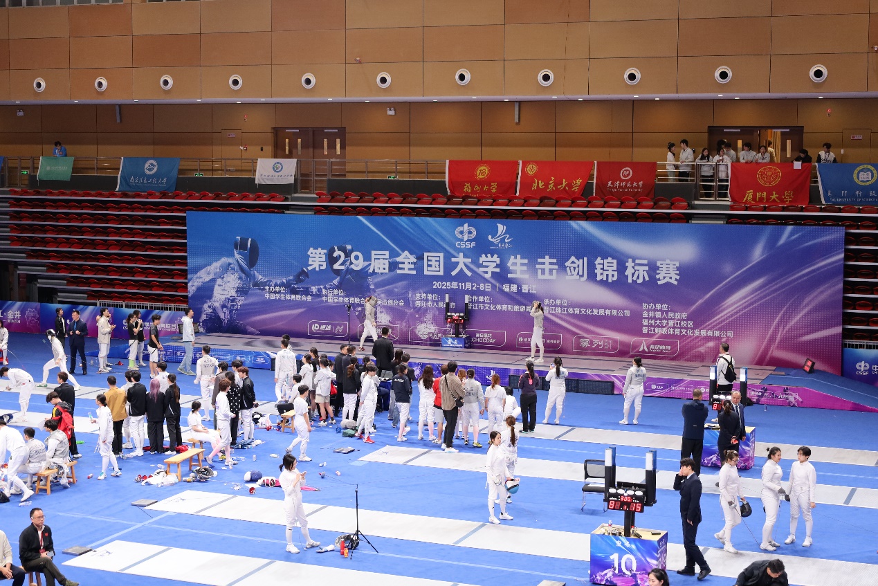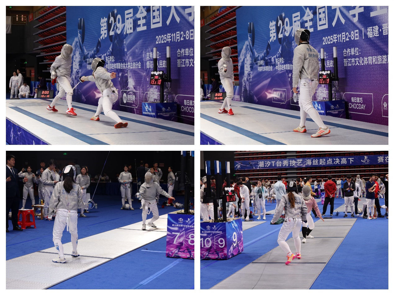 2025年10月31日至11月4日,第29届全国大学生击剑锦标赛在福建晋江成功举行。来自清华大学、北京大学、北京理工大学、北京交通大学等全国105所高校的762名选手参赛。我校击剑队队员李新龙、李嘉怡和高艺轩在领队邱绍林的带领下参赛,并斩获男子佩剑甲组个人赛全国亚军的优异成绩。