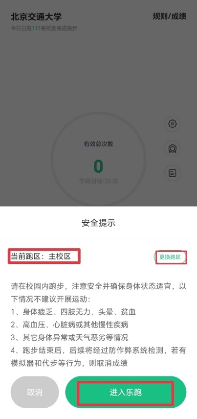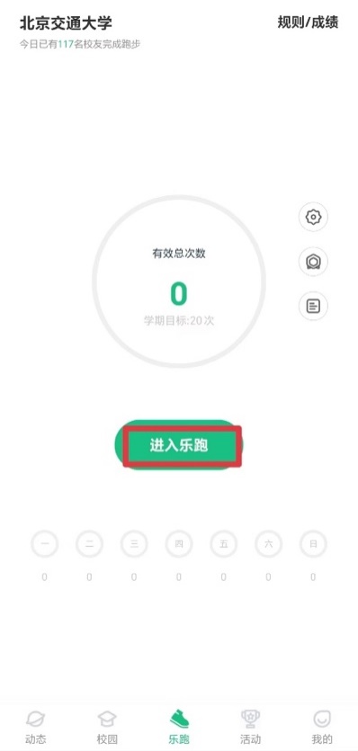 进入乐跑——选择校区——开始乐跑——上传成绩